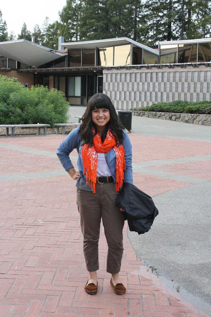 What drew me to this girl's outfit was her cuffed, high-waisted khakis. She has given the former